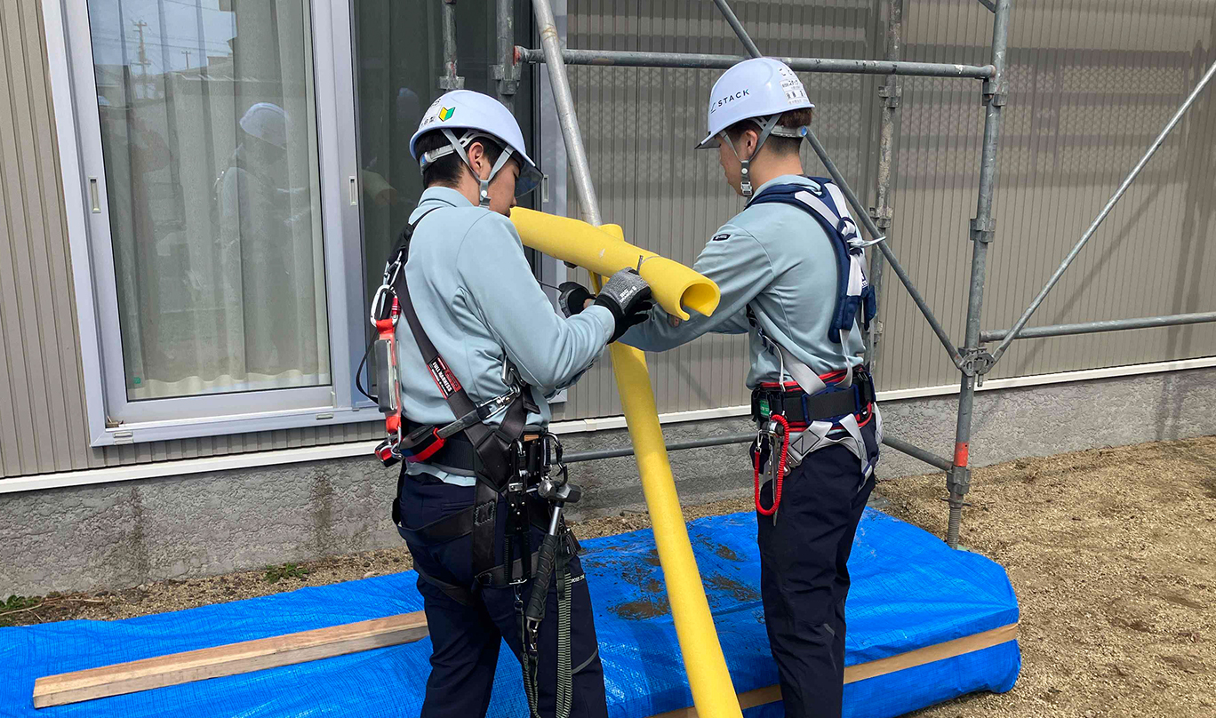 また、労災保険・各種保険制度の整備や、現場での安全確認の仕組みを強化し、安心して働ける環境づくりに取り組んでいます。
